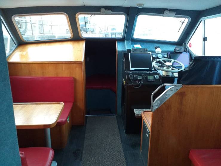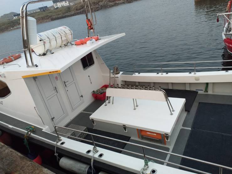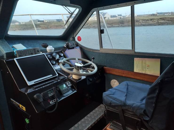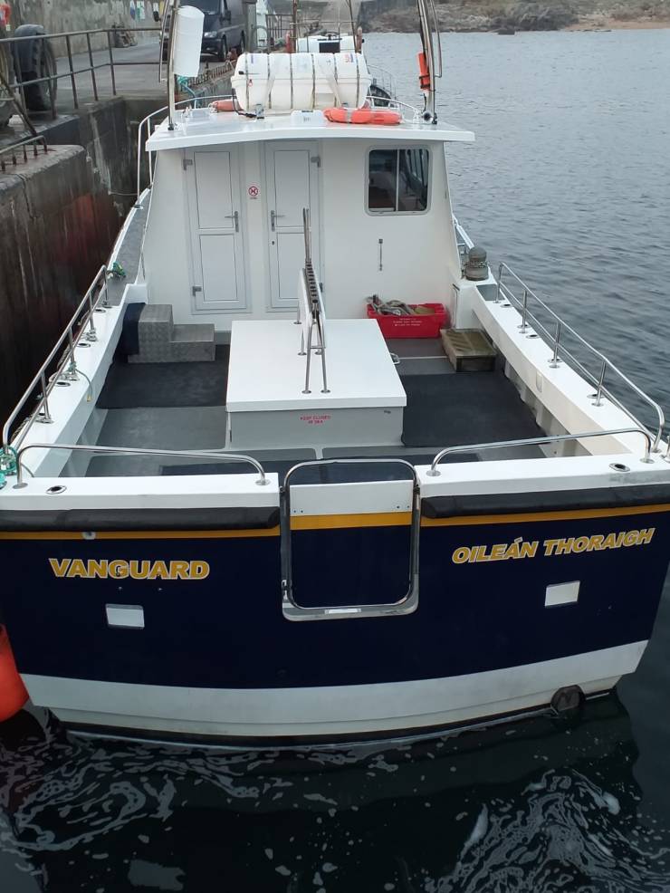 Our vessel the Vanguard is a 42ft intercepter licenced to carry 12 passengers. we have all the required epuipment on board including a 16 person life raft and life jackets for all on board. Facilities on board include a toilet, inside and outside seating. The deck provides a non slip surface. It is spacious and comfortable and has a cruising speed of 16 knots with a top speed of 20+ knots.